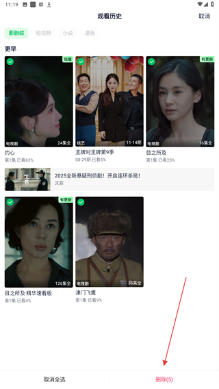 4、选择要删除的视频后,点击删除按钮即可完成。