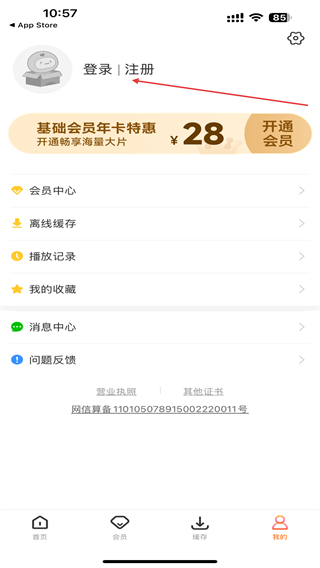 2、进入个人主页内,点击上方登录/注册的区域位置。