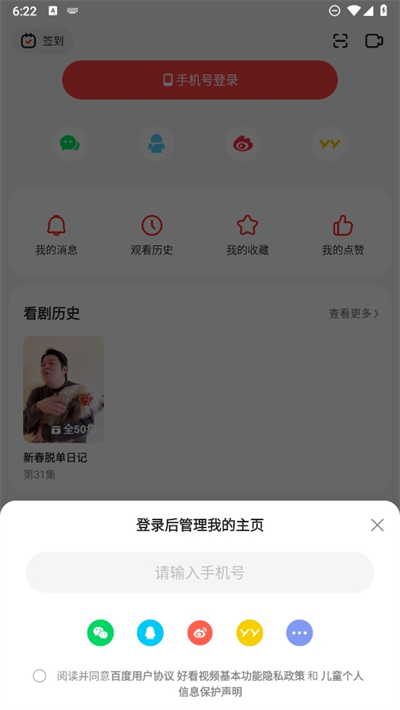 2、点击我的页面后,若未登录,会自动弹出登录界面,填写手机号以及勾选隐私政策。