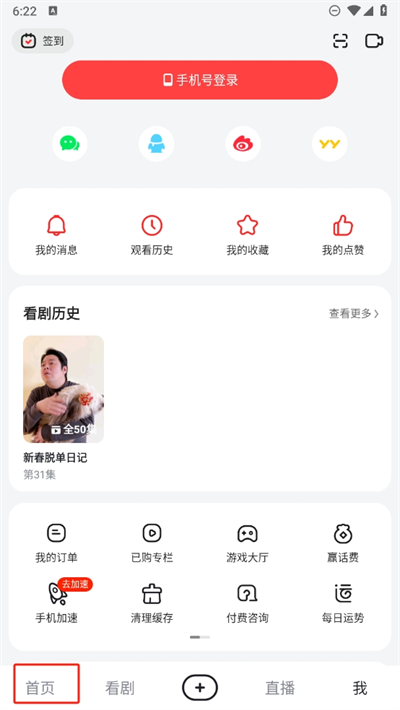 1、进入软件后为了能更好的使用,需要先进行账号的登录登录成功后直接进软件观看;