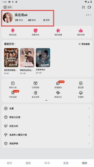 3、登录后继续保留在我的页面中,查看正上方显示用户名称以及头像表示登录成功。