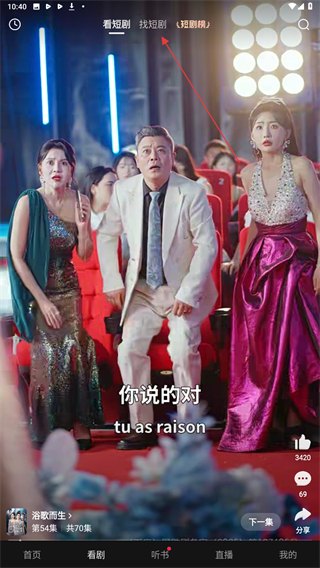2、进入看短剧的界面内,点击正上方找短剧的功能按钮。