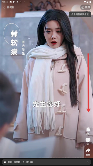 4、点击后自动进入播放的模式,看完一集向下滑动可继续观看。