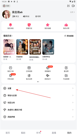 1、打开好看视频的APP,进入首页点击下方看剧的按钮。