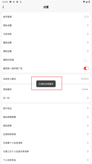 4、当该页面内显示已清除全部缓存的提示,即可完成。