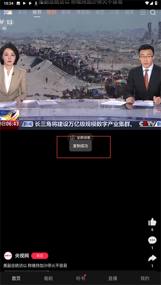1、打开好看视频的应用APP,进入首页点击右侧转发的图标。