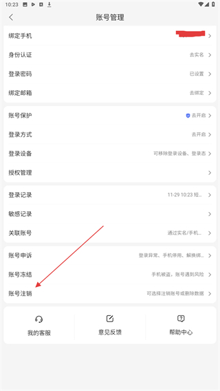 4、在账号管理的页面内,点击账号注销的按钮即可。