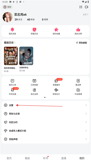 1、启动好看视频的应用软件,点击右下角我的功能按钮。