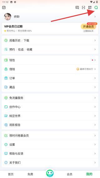 1、进入我的页面后,用户需点击右上角搜索的功能图标。