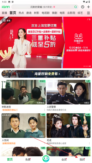 1、打开爱奇艺的APP,在首页右下角点击我的。