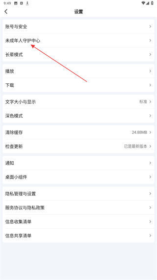 3、在设置的页面内,点击未成年人守护中心。
