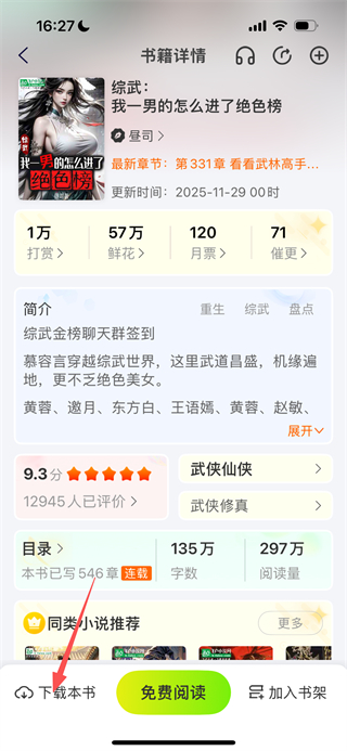 4、在书籍详情页,点击左下角的下载本书按钮,即可下载该小说。