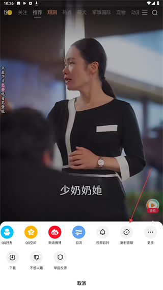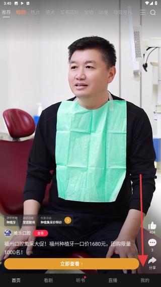 1、打开好看视频APP,进入时点击右侧分享的按钮。