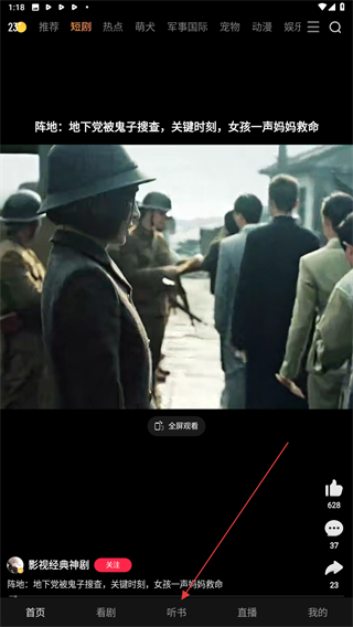 1、启动好看视频的应用,在首页导航栏中点击听书的标签。