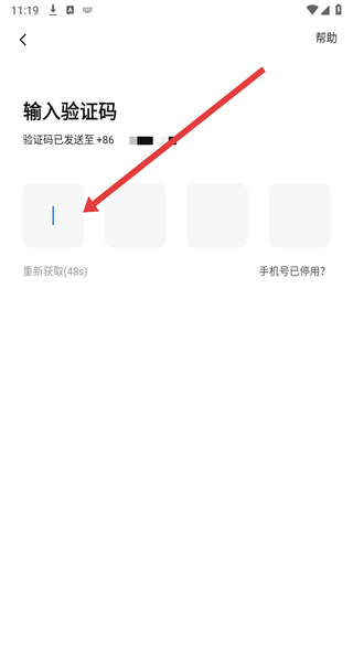 4、在跳转到验证页面中,点击输入框填写收到的短信验证码,即可完成登录。