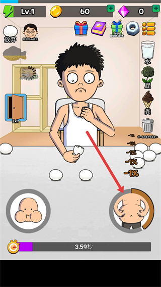 2、注意左边的进度条,不停点击能防止角色噎死。