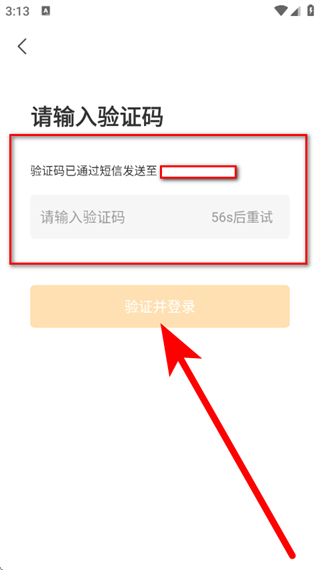 4、在验证码输入页面,输入短信验证码,点击验证并登录,完成账号登录。
