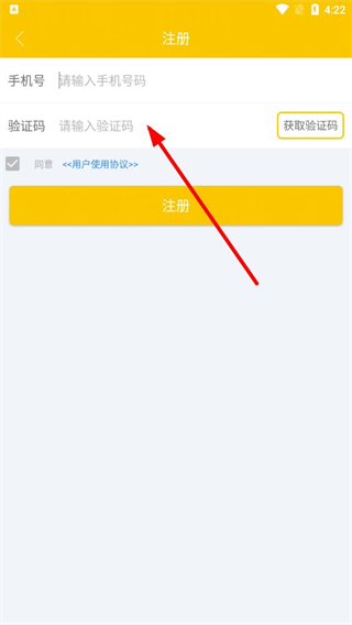 4、在注册页面,输入手机号,获取并填写验证码,勾选同意协议后点击注册按钮,完成账号注册。