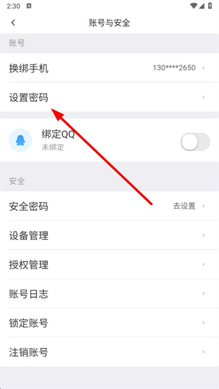 4、进入账号与安全页面后,点击设置密码选项即可进行密码设置。