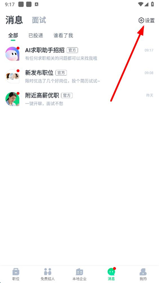 1、打开赶集招聘APP,在我的页面点击右上角设置图标。