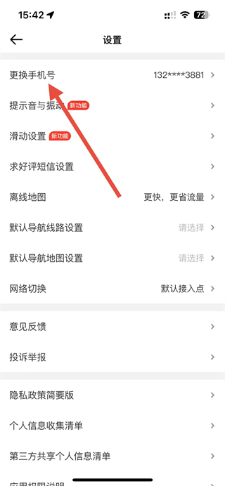 3、在设置页面中,找到并点击更换手机号选项。