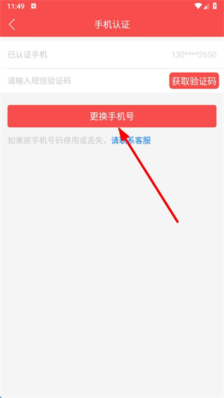 4、在手机认证页面点击更换手机号按钮,按提示输入验证码并完成新手机号验证,即可修改手机号。