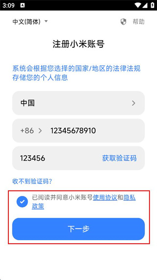 4、勾选已阅读并同意相关协议,点击下一步,完成注册后即可登录。