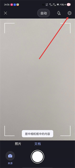 3、进入相机扫描界面后,点击右上角的设置图标,打开相机扫描的设置页面。