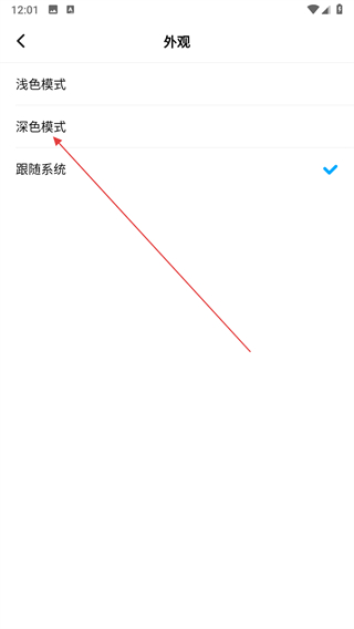 5、在外观页面,点击深色模式选项即可。