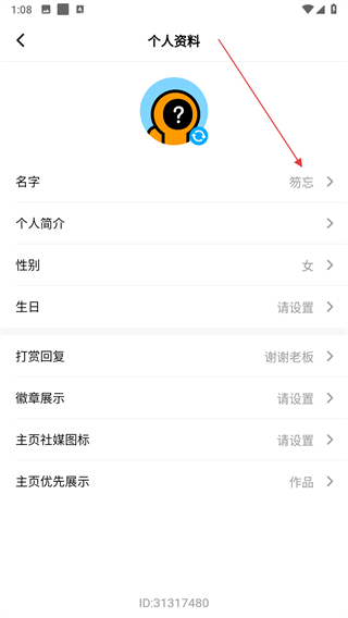 3、在个人资料页面中,点击名字选项。