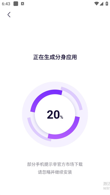 4、在这里耐心等待一会儿,便可以成功的生成出这个软件的分身,既可以完成分身操控;