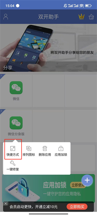 双开助手微分身版怎么把微信添加到桌面