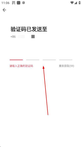 3、在验证码输入页面填写收到的验证码,未注册用户将自动完成账号注册。