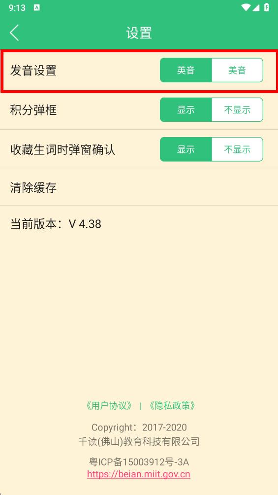 3、在设置界面里,找到发音设置区域,能看到英音和美音选项。