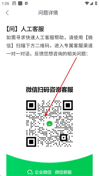 5、在问题详情页面使用微信扫描对应的二维码,即可联系专属人工客服。