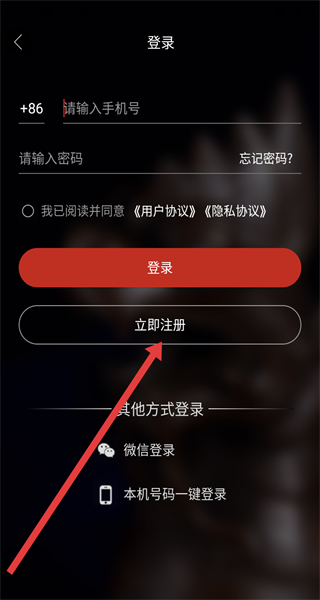 3、登录页面点击“立即注册”,进入注册界面。