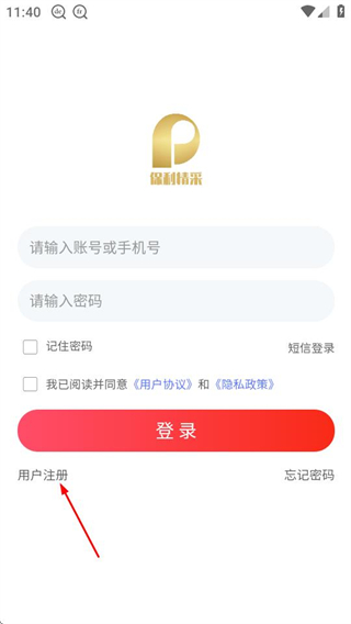 3、在登录页面,点击用户注册选项,进入用户注册页面。