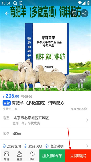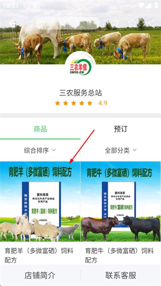 1、在三农羊倌的首页,点击牛羊商城选项,进入商品列表页面。