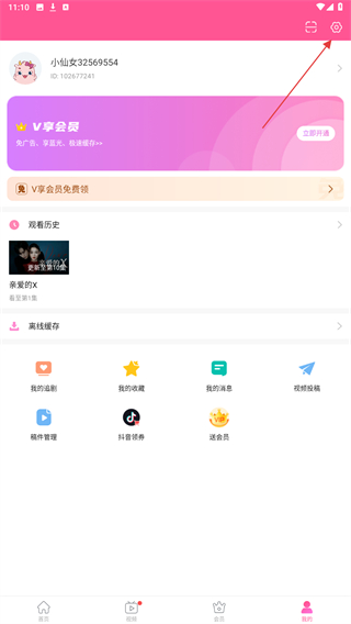 2、进入我的页面内,点击右上方设置的功能按钮。