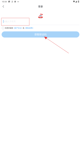 3、在登录的页面内,输入手机号并点击获取验证码即可。