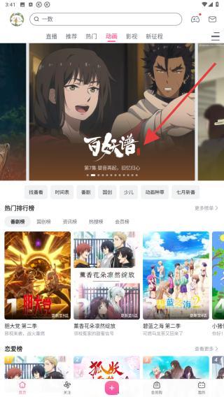 1、打开哔哩哔哩app,通过顶部导航栏找到并点击动画的标签。