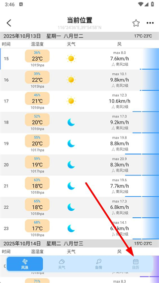 4、找到并点击你想查看的第二天日期,即可查看对应日期当天的潮汐信息。