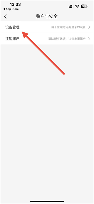 3、在账户与安全页面点击设备管理选项,进入设备与管理页面。