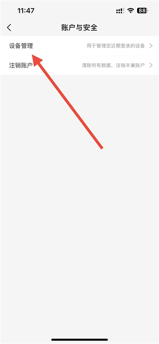 3、在账户与安全页面点击设备管理选项,进入设备与管理页面。