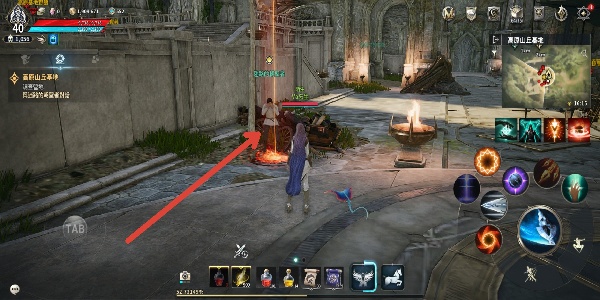 2、操控角色在场景中移动,借助操作按键调整视角,探索周围区域,靠近目标位置推进流程。