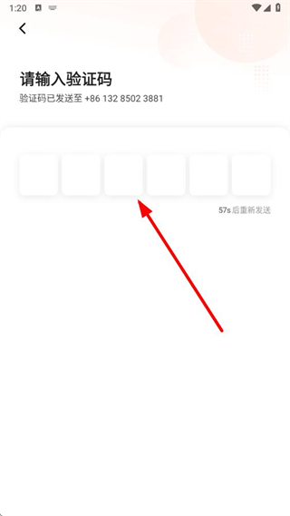 2、在验证码页面,输入发送至对应手机号的验证码,完成身份验证流程。