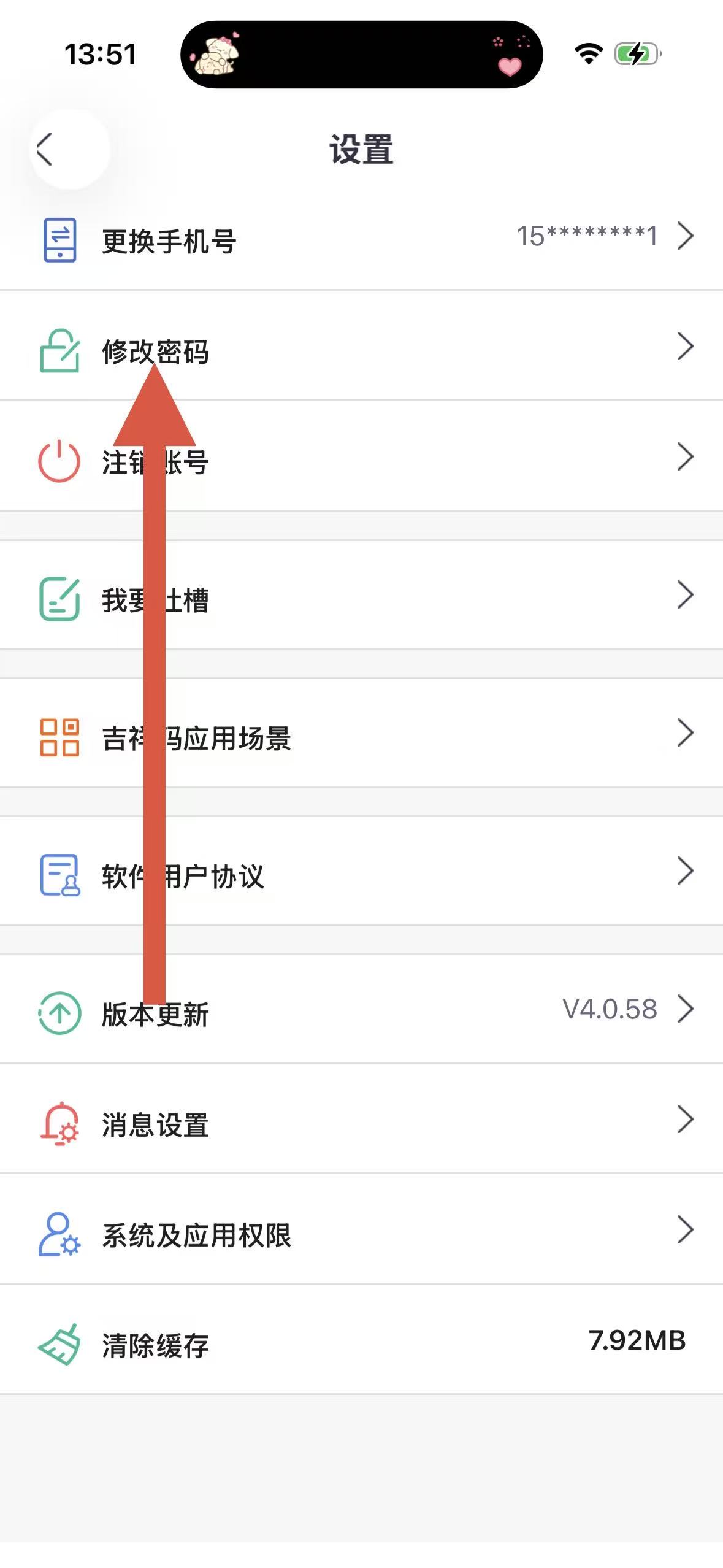 3、在设置界面中,点击修改密码选项,进入修改密码页面。