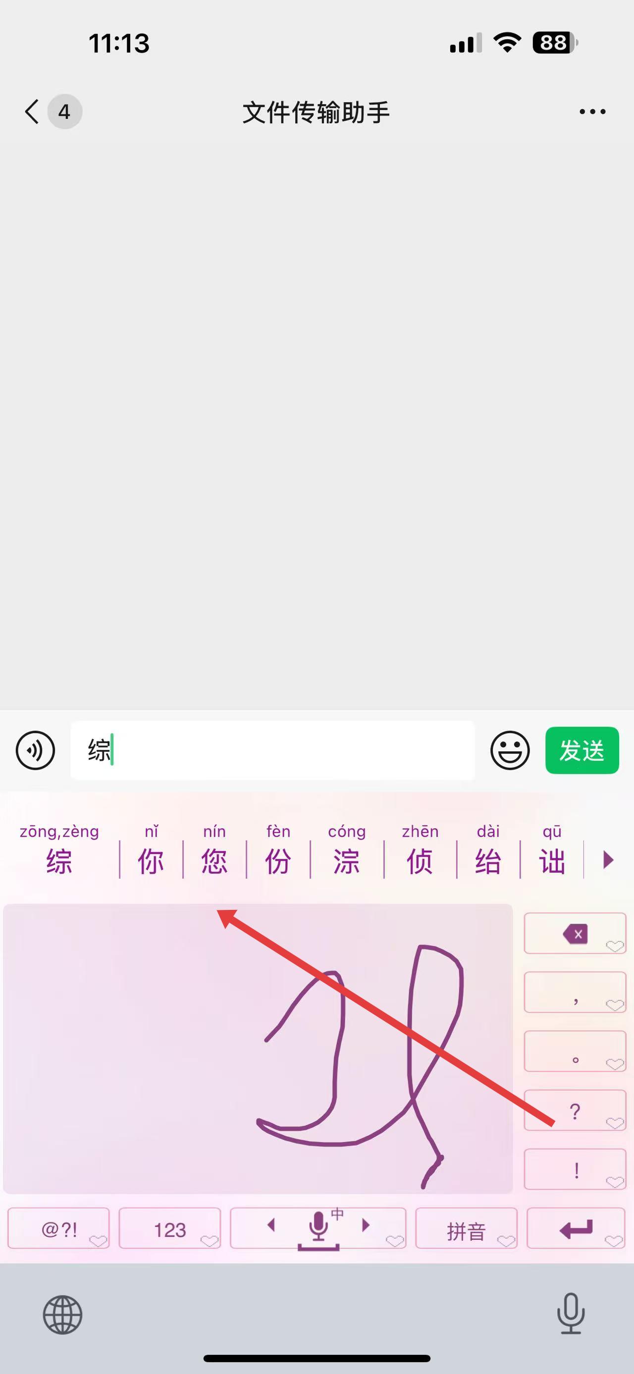 3、书写完成后,输入法会识别内容并在候选栏展示,点击所需文字即可输入。