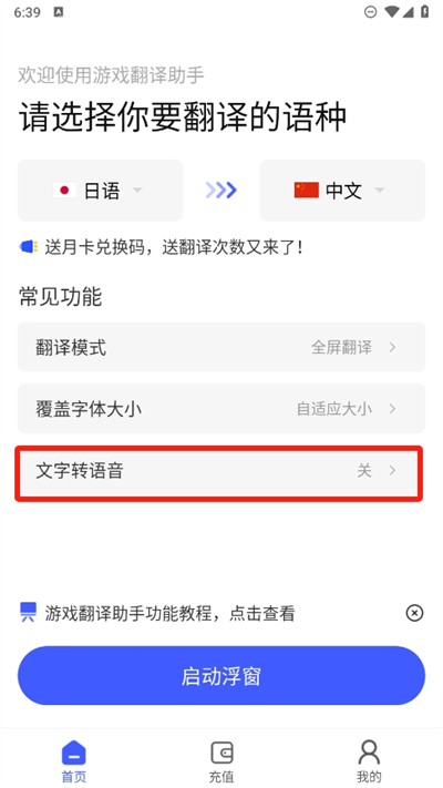 5、接着设置好自己翻译的所有参数后,直接点击启动浮窗并打开应用或者游戏即可自动翻译。