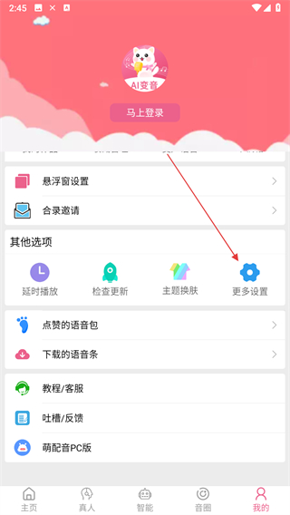 1、打开萌配音应用,点击首页底部导航栏中的我的选项,进入个人中心页面。